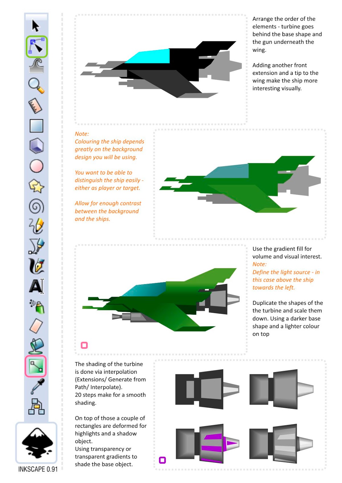 This is an addition to the space ships tutorial I posted early. I added a few more elements (guns, hull part, wings, engine bits, signs, etc.) to allow the quick creation of space ships in 2D - side on or top down.